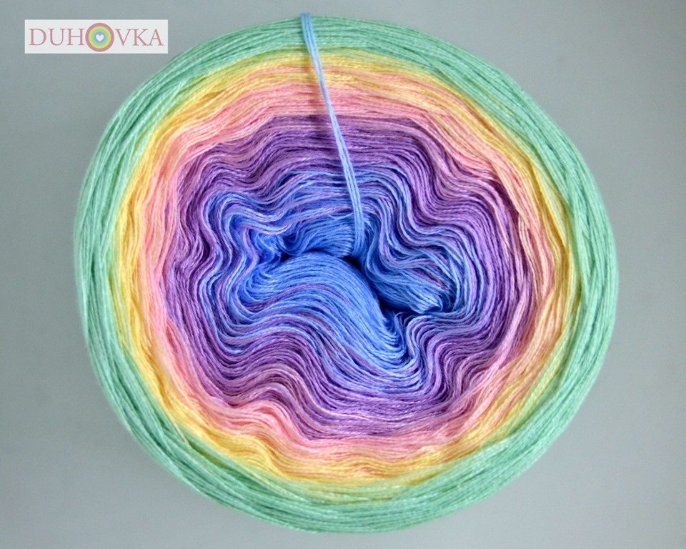 Duhovka je jemná směsová příze s postupnými barevnými přechody.
