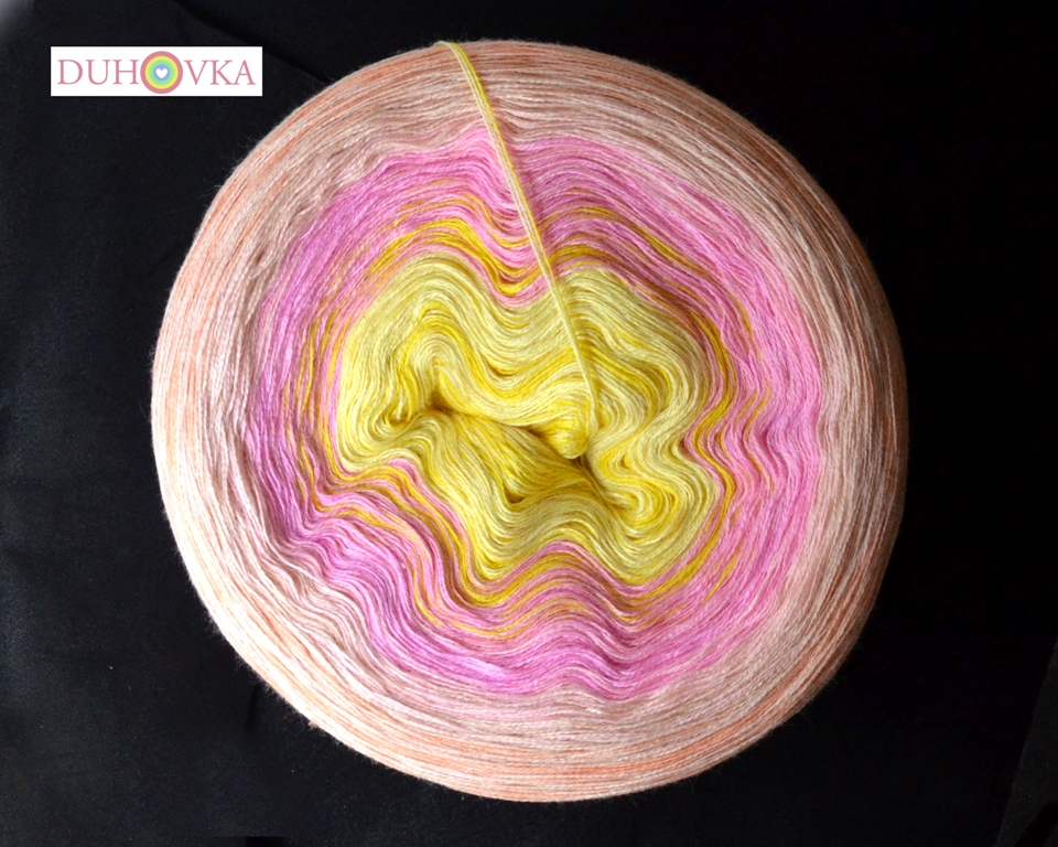 Duhovka je jemná směsová příze s postupnými barevnými přechody.