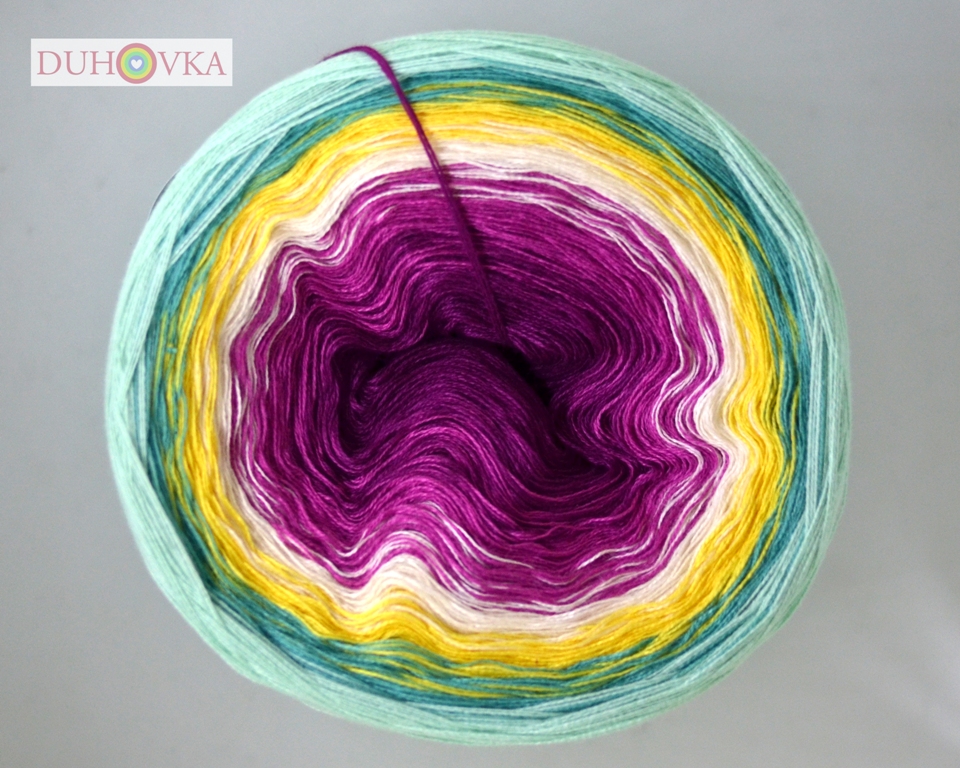 Duhovka je jemná směsová příze s postupnými barevnými přechody.