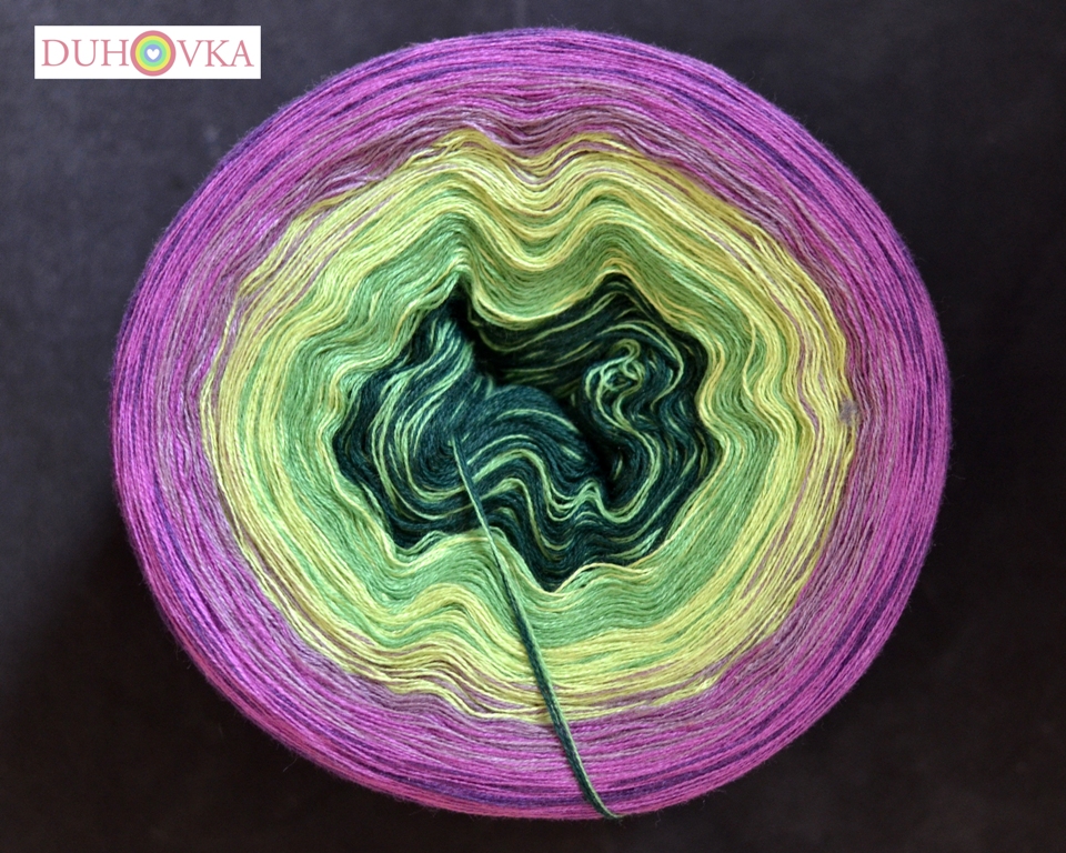 Duhovka je jemná směsová příze s postupnými barevnými přechody.