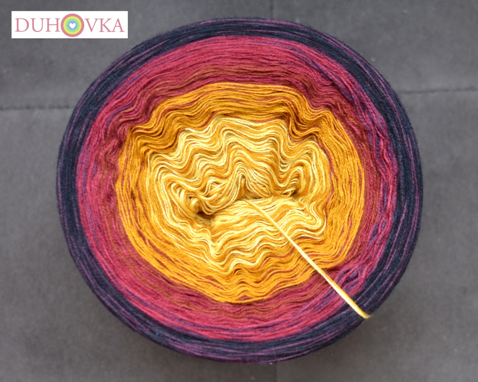 Duhovka je jemná směsová příze s postupnými barevnými přechody.