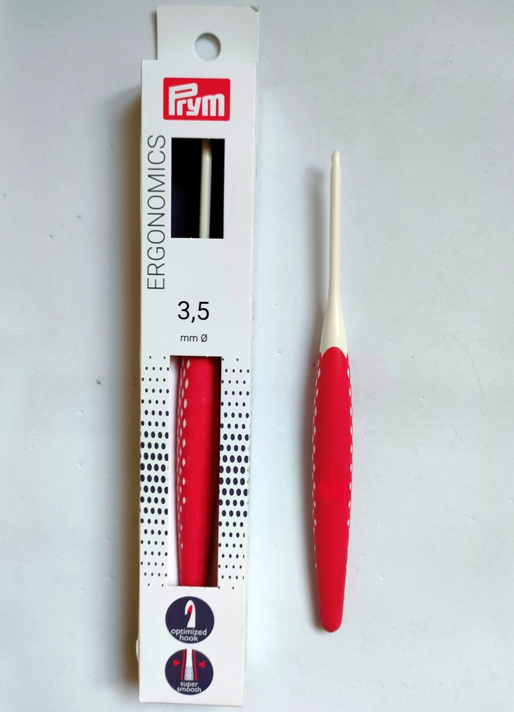 Háček je ergonomický a lehký. Eergonomická ručka je příjemná na dotyk a snižuje únavu při práci. Německý výrobek PRYM