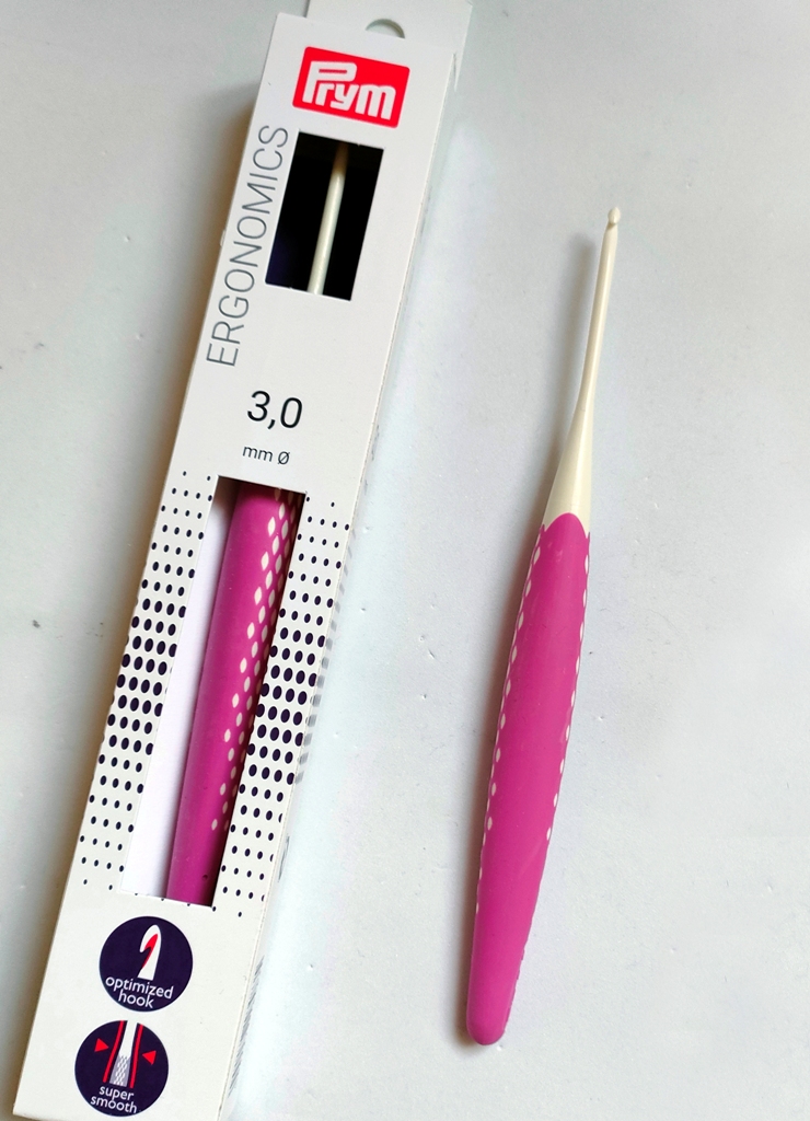 Háček je ergonomický a lehký. Eergonomická ručka je příjemná na dotyk a snižuje únavu při práci. Německý výrobek PRYM