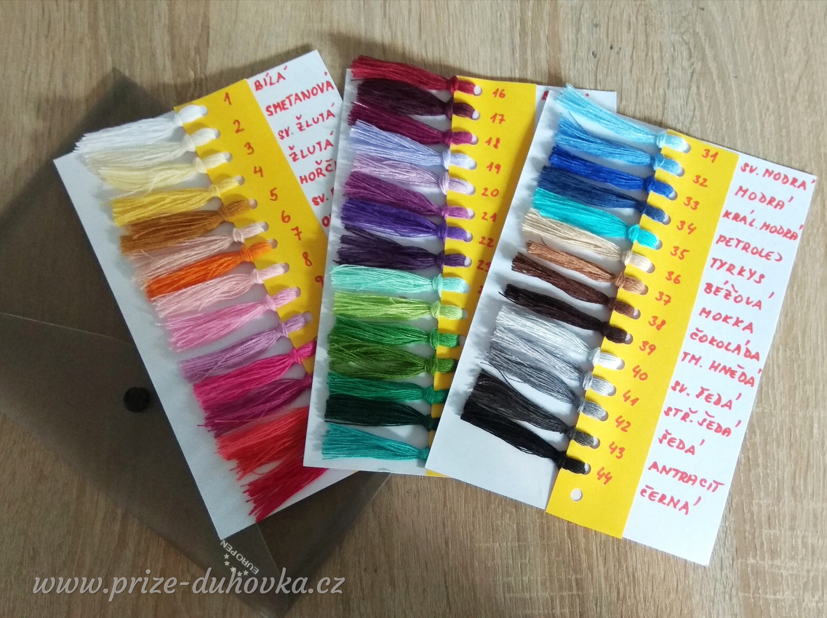 Vzorník barev příze Duhovka, celkem 50 barev.
